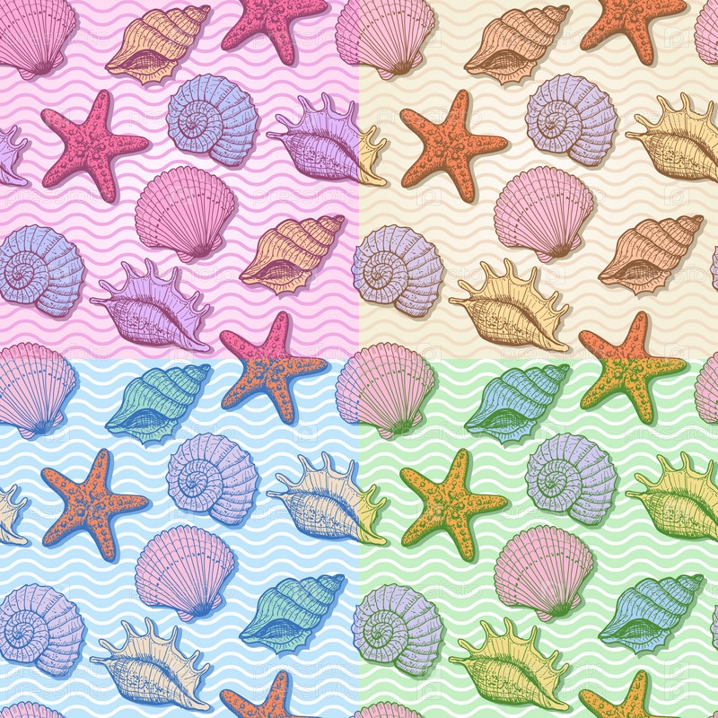 Набор морских нарисованных от руки бесшовных шаблонов