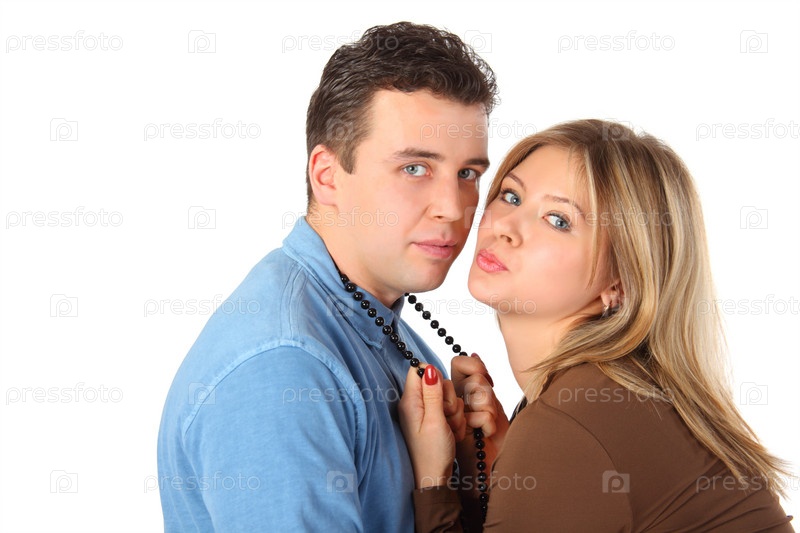 Молодая женщина не отпускает от себя мужчину