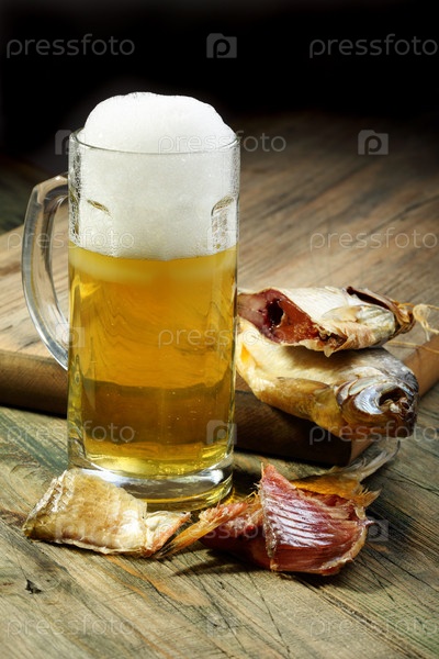 Соленая рыба с полным стаканом пива