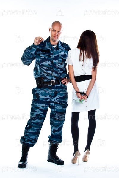 Офицер полиции арестовывает молодую женщину