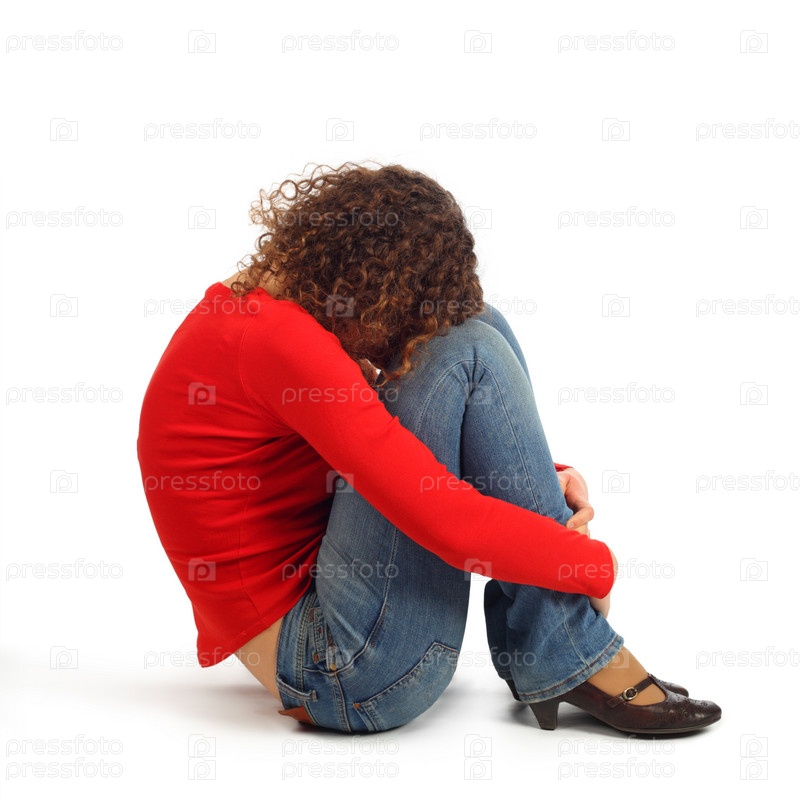 Молодая девушка сидит на полу