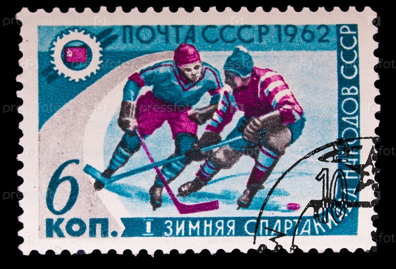 СССР, марка 1962 года, первые Зимние Олимпийские игры СССР, хоккей