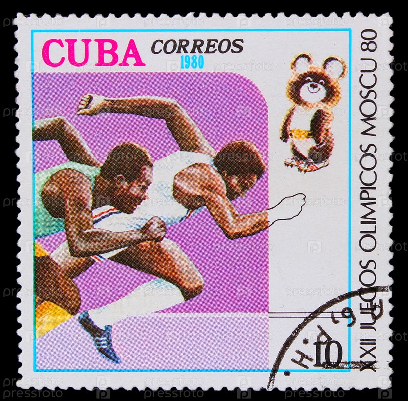Кубинская марка 1980 года. Два бегущих спортсмена