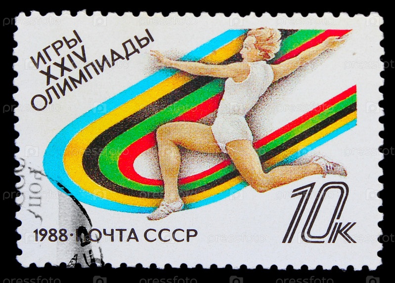 Марка СССР 1988 года. Легкая атлетика, прыжки в длину, Сеул, Южная Корея