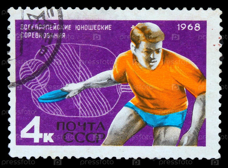 Марка СССР 1968 года. Европейский молодежный турнир по настольному теннису