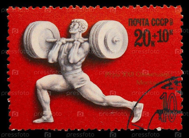 Марка СССР 1980 года. Московские Олимпийские игры 1980 года. Тяжелая атлетика