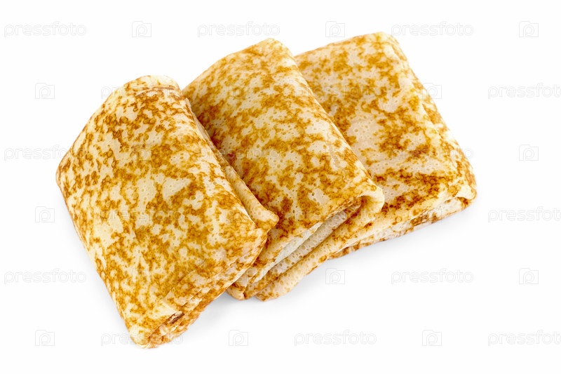 Обжаренные блинчики, изолированные на белом фоне