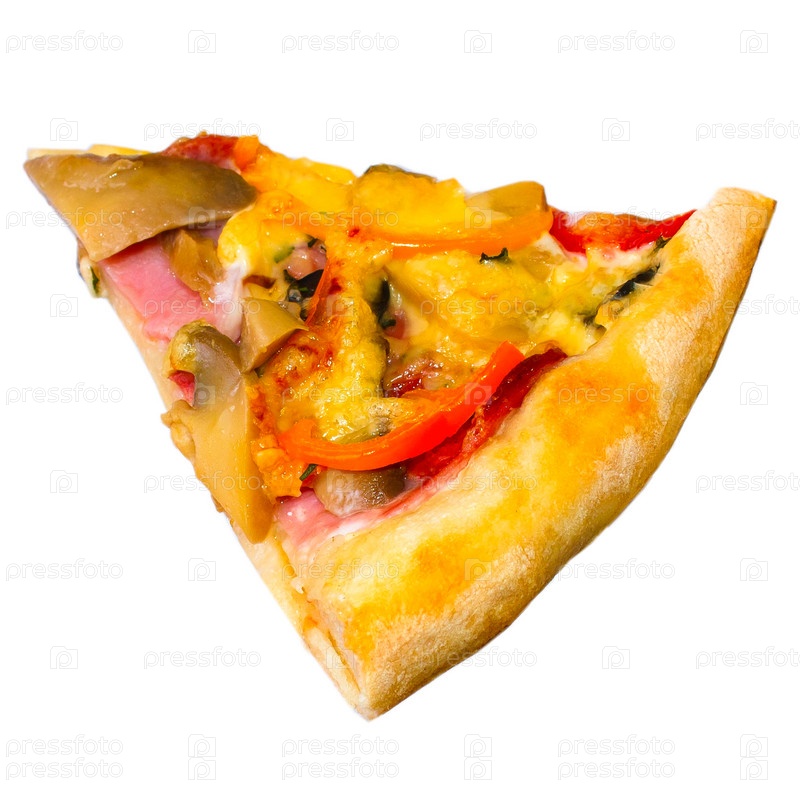 Кусок пиццы, изолированный на белом фоне