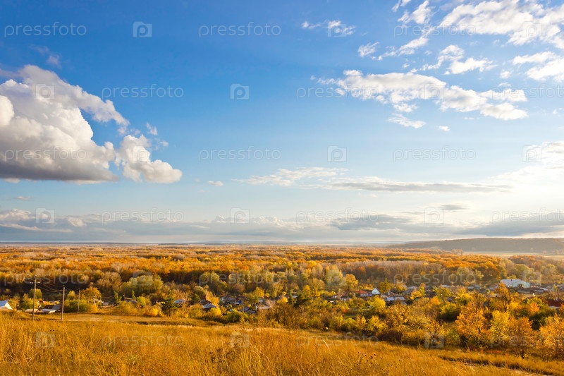 Осенняя равнина и красивое небо в России