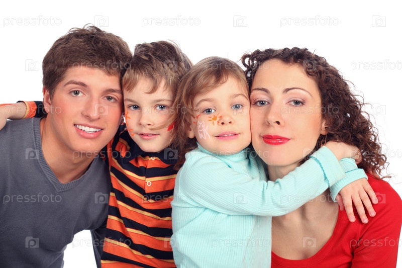 Семья из четырех человек, рисунок на лице детей