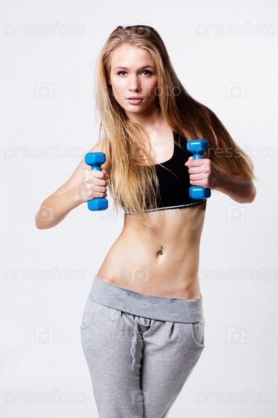 Спортивная женщина занимается с гантелями
