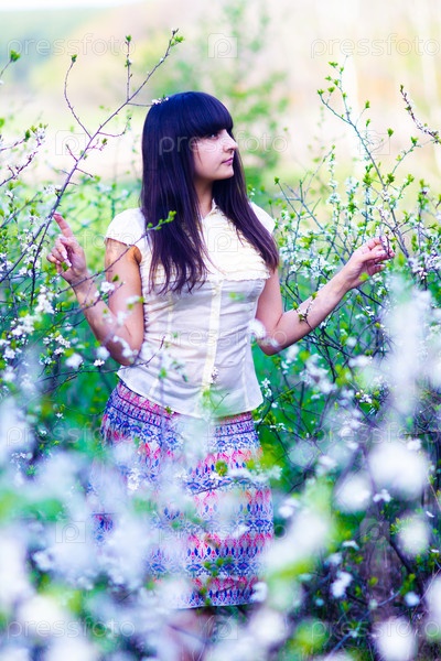 Девушка держит ветки сакуры