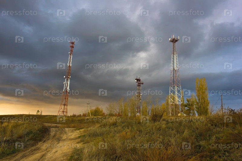 Вышки сотовой связи на фоне вечернего неба