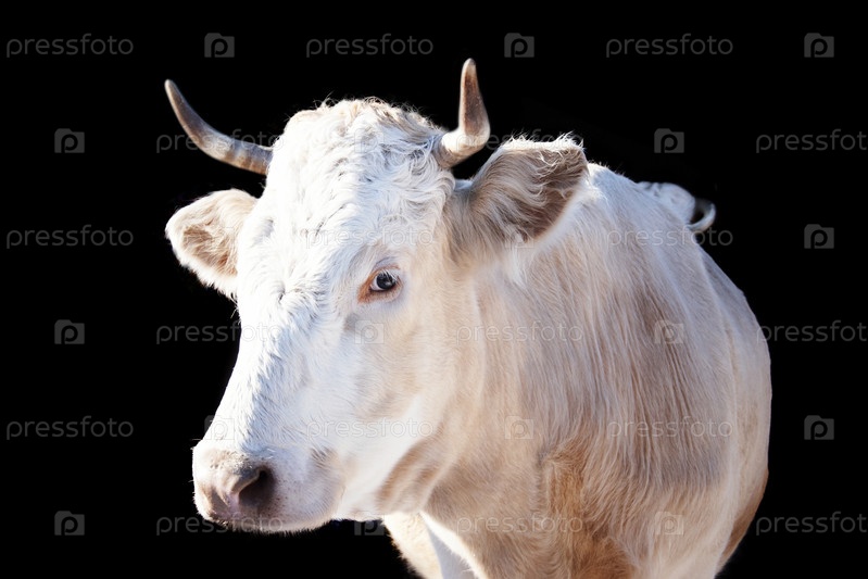 Корова, изолированная на черном фоне