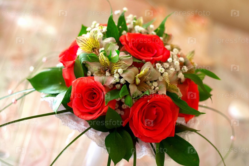 Красный свадебный букет