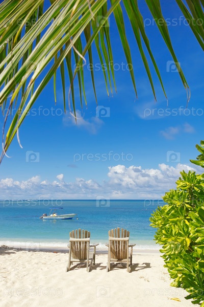 Шезлонги на белом песке