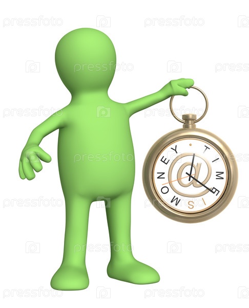 Человечек держит в руке часы с символом электронной почты