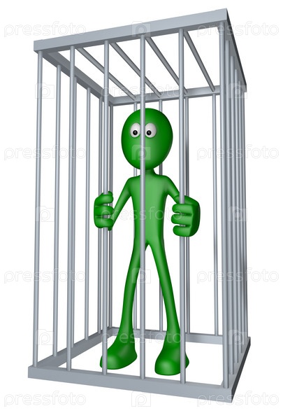 Зеленый человечек в клетке. 3D иллюстрация