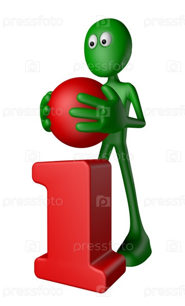 Зеленый человечек с точкой от буквы i. 3d иллюстрация