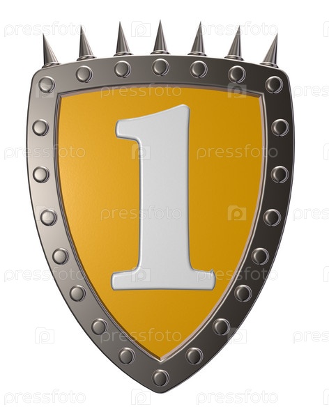 Щит с цифрой 1 на белом фоне, 3d