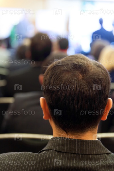 Аудитория слушает выступающего в конференц-зале