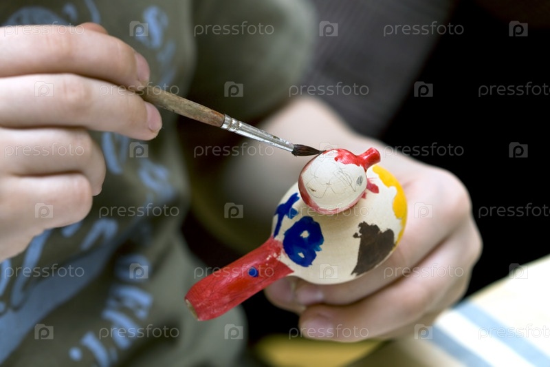 Ребенок раскрашивает птичку