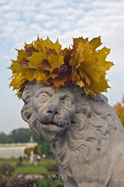 Лев с венком из листьев в Кусково, Москва