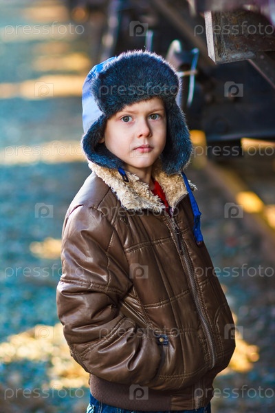 Бездомный мальчик в шапке и куртке мерзнет на улице