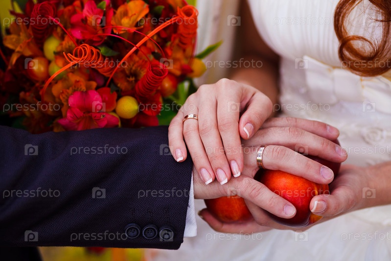 Руки невесты и жениха с кольцами