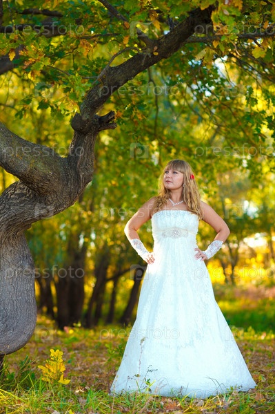 Невеста в день свадьбы в лесу