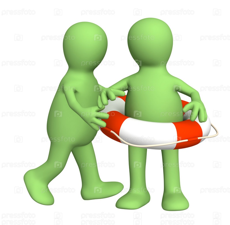 Человечек, одевающий на друга спасательный круг