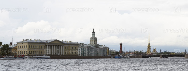 Панорама с видом на здание Академии наук, Кунсткамеру и Петропавловскую крепость