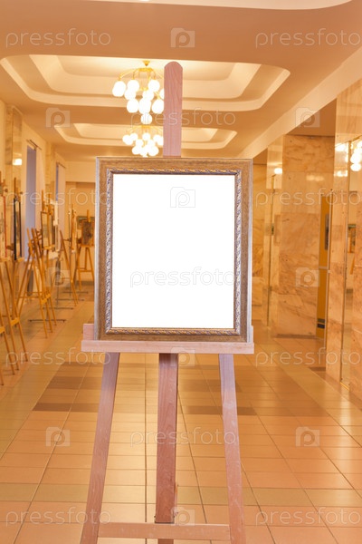 Деревянная рамка на мольберте в художественной галерее