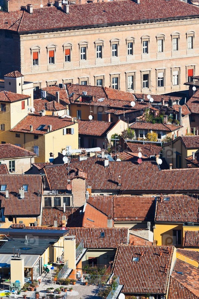 Вид на старый город с башни Азинелли в Болонье