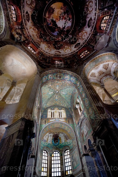 Зеленая потолочная мозаика в базилике Сан-Витале в Равенне