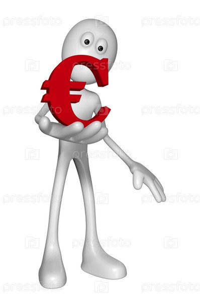 Белый человечек с символом евро. 3D иллюстрация