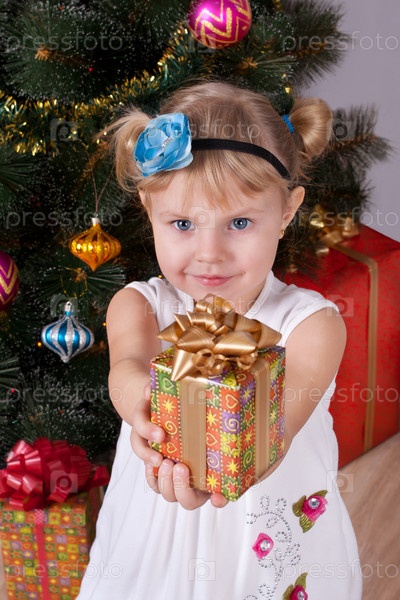 Счастливая девочка с подарками