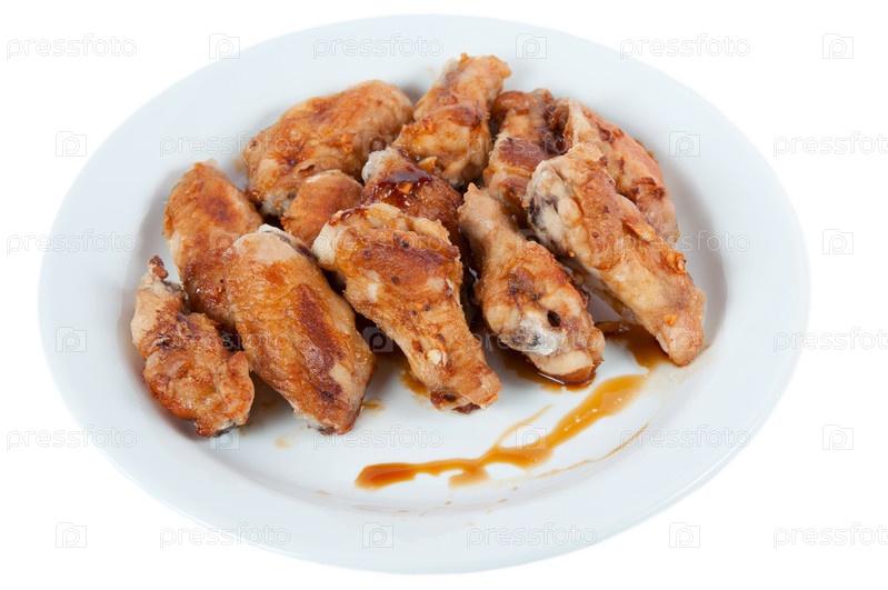 Жареные куриные крылышки, изолированные на белом