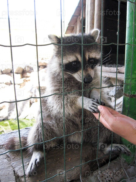 Енот с лапой за решеткой