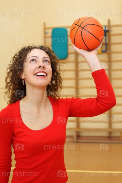 Молодая девушка бросает баскетбольный мяч