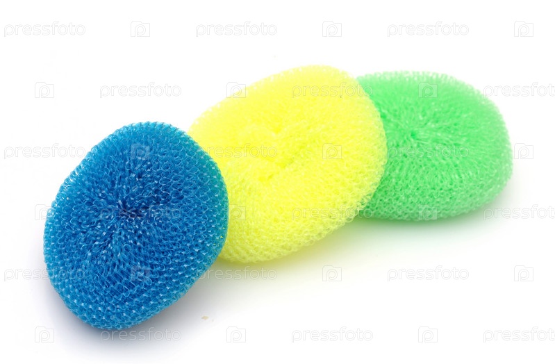 Кухонные губки для посуды на белом