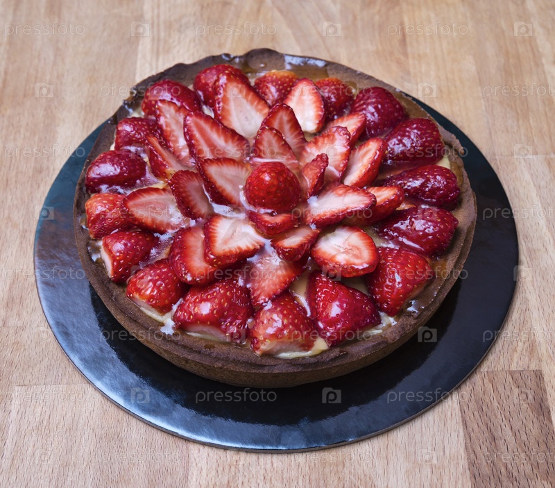 Клубничный пирог на деревянном столе, Италия