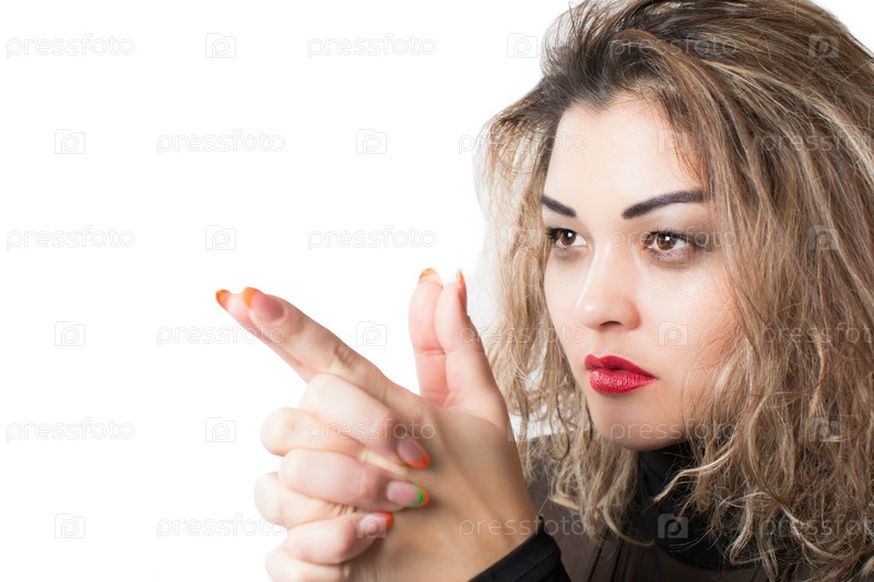 Портрет страстной стильной женщины, изолированный на белом фоне