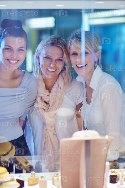 Девушки делают покупки в магазине ювелирных изделий