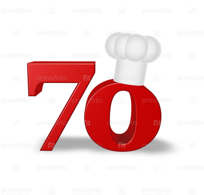Фигура 70 с кулинарной шляпой на белом фоне - 3d иллюстрация