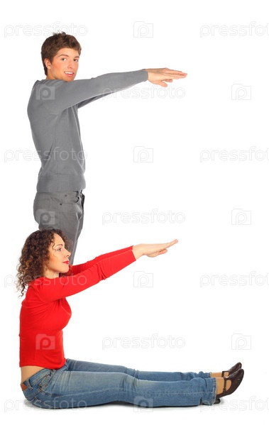 Молодой мужчина и женщина представляют собой букву 'E'