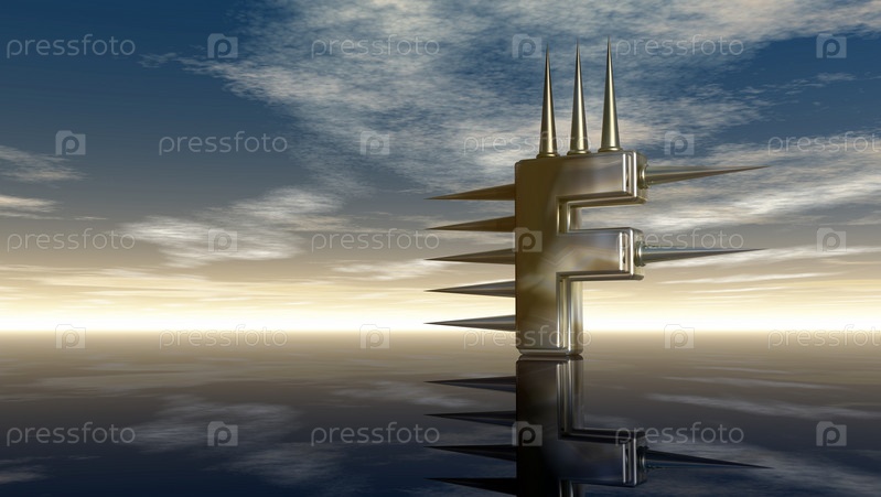 Буква f с металлическими шипами под облачным небом - 3d иллюстрация