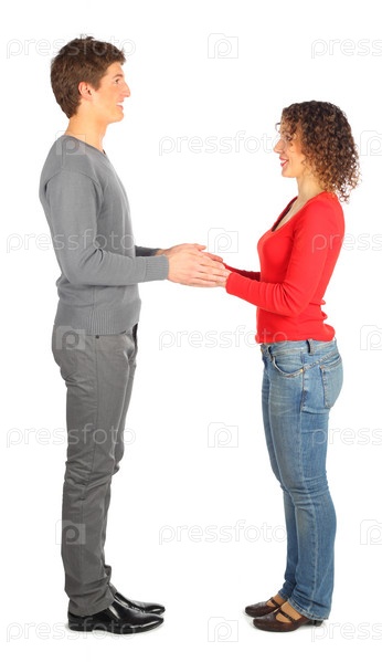 Молодой человек и женщина представляют собой букву 'H'