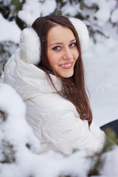 Женщина сидит в зимнем парке