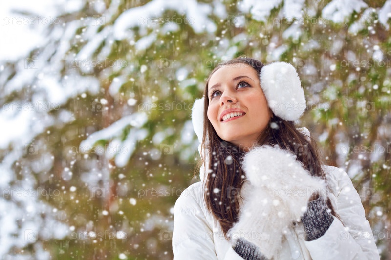 Женщина гуляет в зимнем парке